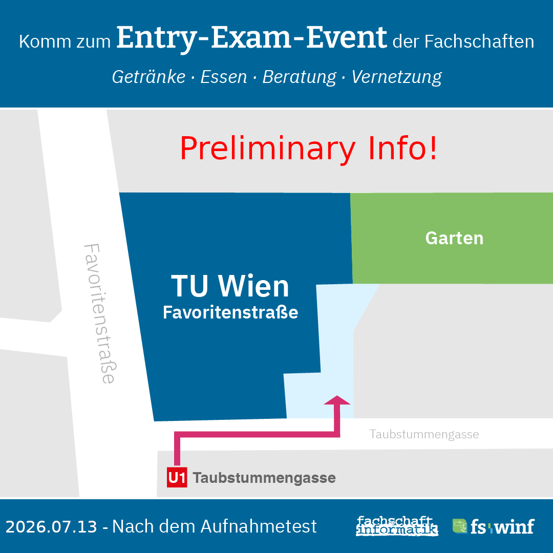 Wir sind die Fachschaft Informatik und die Fachschaft Wirtschaftsinformatik und Data Science, deine künftigen Studienvertretungen an der TU Wien und wünschen dir jetzt schon viel Erfolg beim Test!